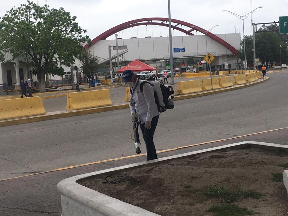 Además de la entrega de cubrebocas sanitizaron el área federal del Puente Nuevo Internacional Puerta México.