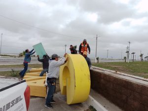 El Gobierno de Matamoros a través de la Dirección de Servicios Generales, retiró las letras que distinguen a la Playa Bagdad, las cuales fueron derribadas por los fuertes vientos que trajo la tormenta que afectó a esta ciudad y que provocó que este lunes continuara la marea alta en el paseo recreativo