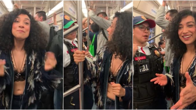 Posteriormente, la intérprete comenzó a cantar su tema “Tiempo” cuando una oficial que venía a su lado le interrumpió: “No puedes venir cantando porque me vas a tener que acompañar al juzgado cívico”. Al instante, la artista preguntó la razón de su aseveración y animó a la gente para continuar con su canción “¿sí quieren que me lleve?”, dijo Amargo dirigiéndose a los usuarios para luego aplaudir al ritmo de su tema musical.