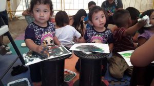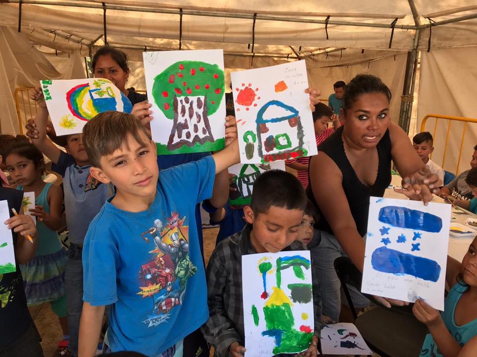 Colorida tarde vivieron los niños del campamento migrante al participar en un primer taller de pintura colectiva impartida por el proyecto Arte x La Paz.