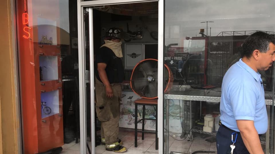 Elementos de Protección Civil y Bomberos acudieron a un conato de incendio que se registró esta mañana en el negocio dedicado a la venta de alitas y boneless ubicado en el centro comercial de la tienda HEB.