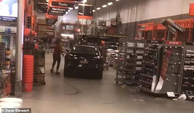 En el video, se ve a una mujer conduciendo un Pontiac en el interior de Home Depot mientras se escuchan a los empleados y clientes sorprendidos gritando.