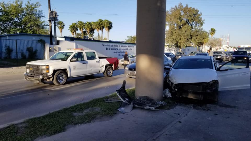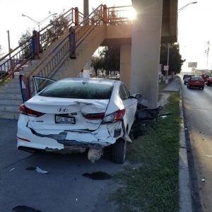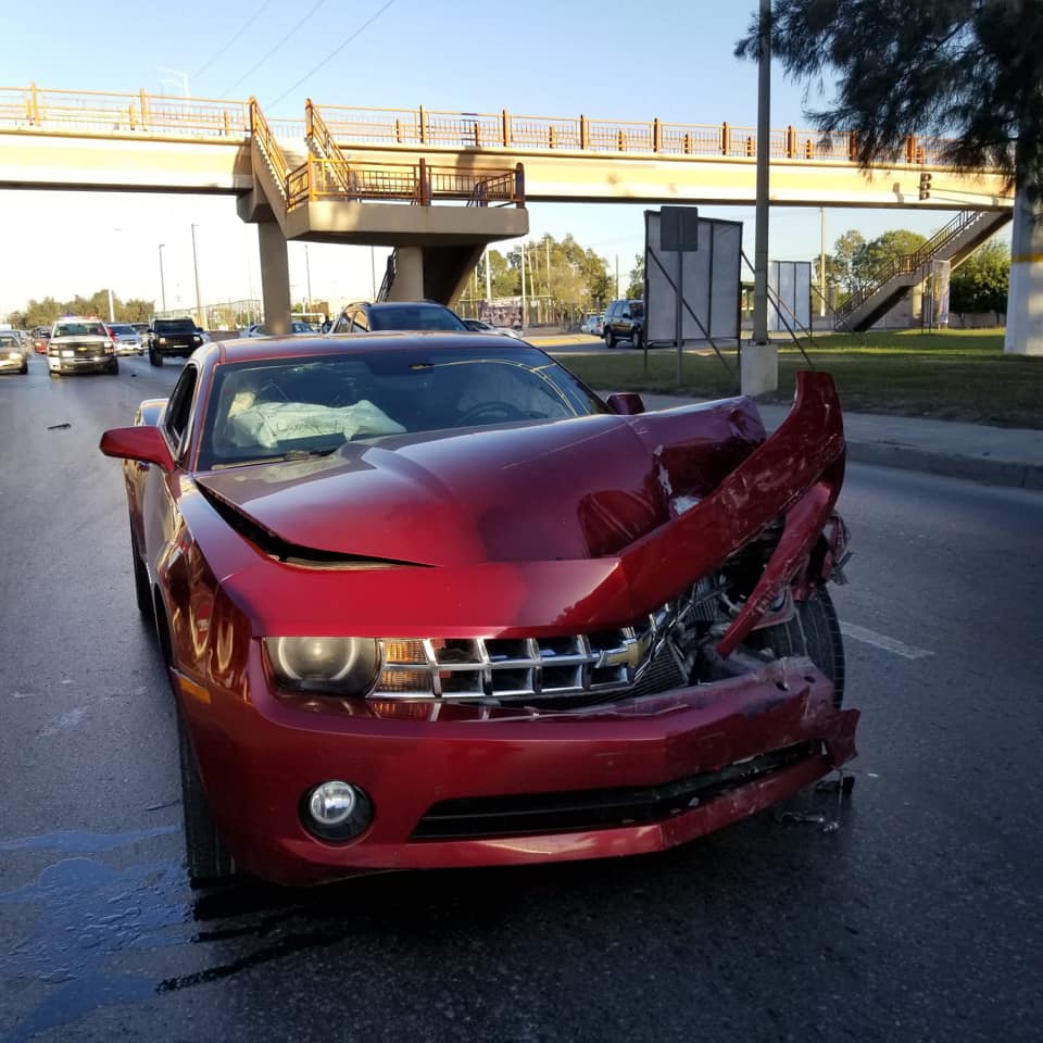 Se informó que el automóvil Camaro color guindo impactó al auto Hyundai color blanco de reciente modelo mandándolo hasta arriba del camellón y estrellándose contra un muro del puente peatonal, para después el conductor responsable se diera a la fuga corriendo.