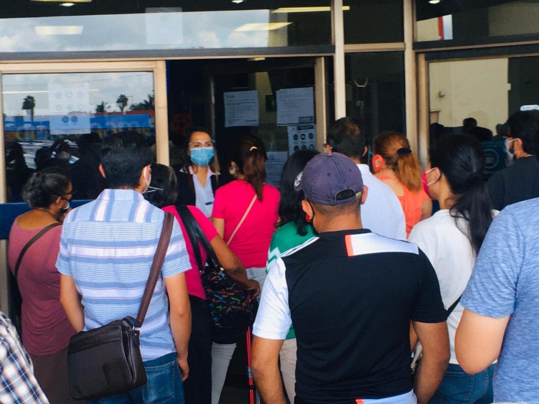 El peligro de contagios es bastante alto en filas de bancos ya que no hay sana distancia, nadie cuida su espacio para no estar tan pegados a las demás personas.