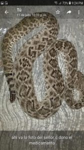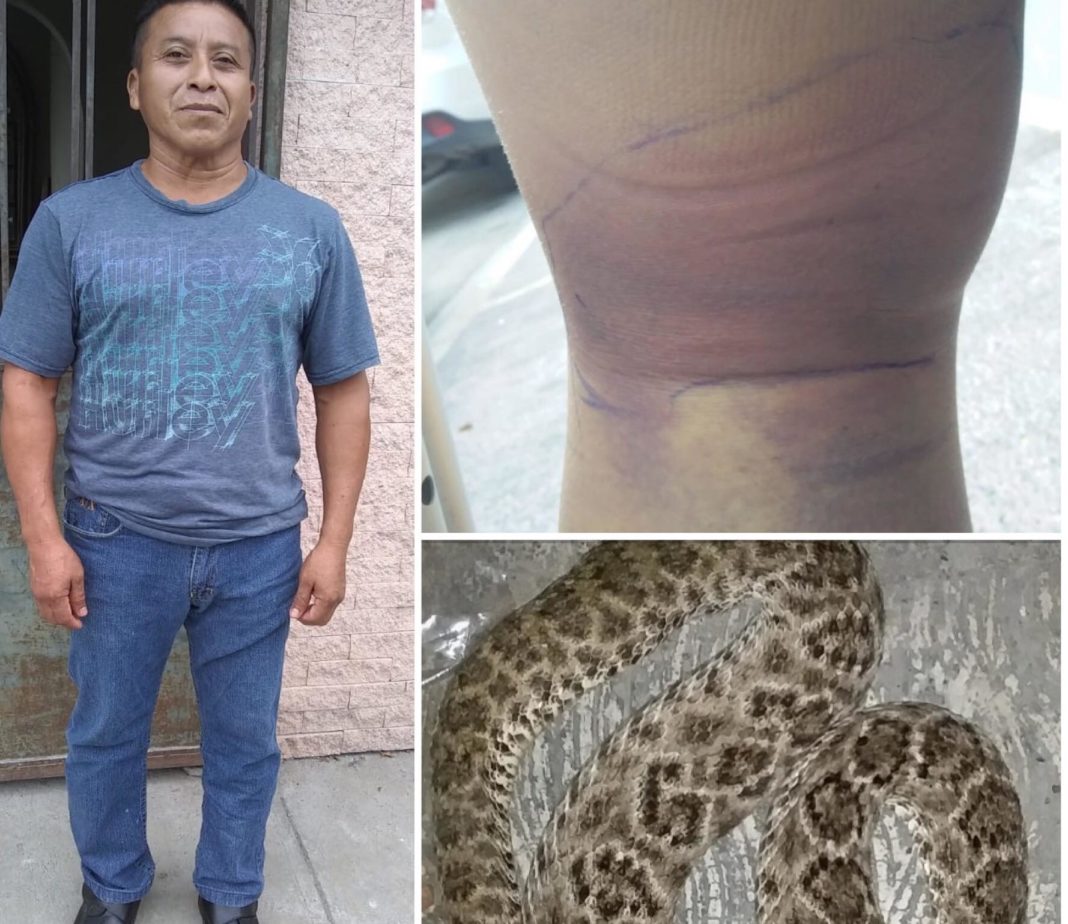 Macabro regalo recibió el Día del Padre vecino del ejido La Luz cuando al salir al patio de su vivienda fue mordido por feroz víbora de cascabel en ataque que casi le cuesta la vida.