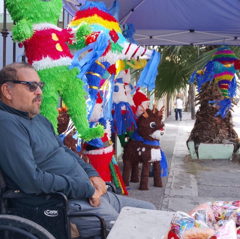 Sin una pierna y con la vista mermada por la diabetes, hombre hace piñata y las vende para mantenerse