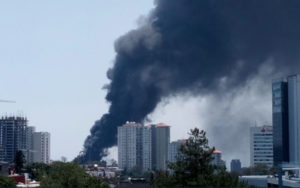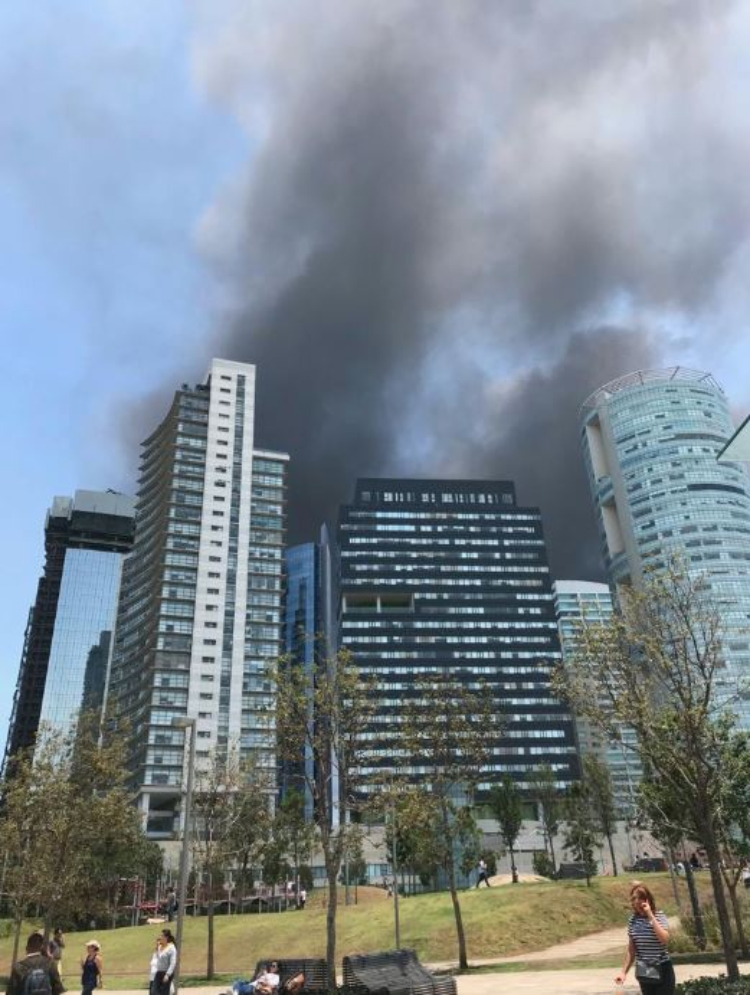 Enormes columnas de humo rebasaron las torres de cristal de los departamentos y corporativos que se encuentran en dicho lugar.