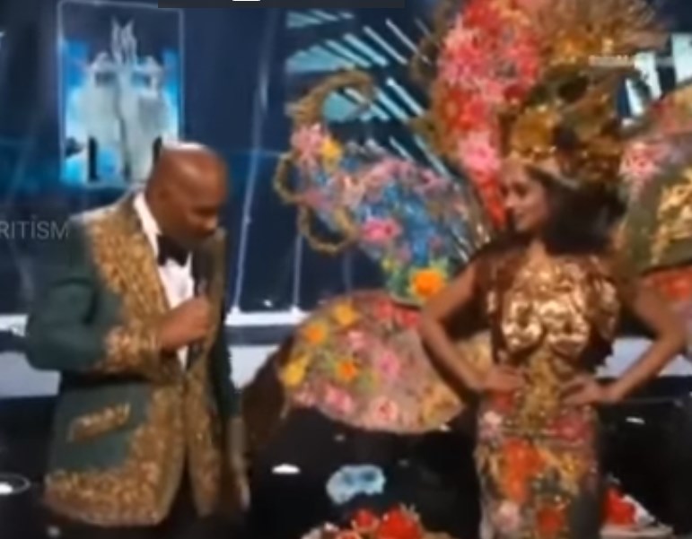 Leyendo un telepromter al cual culpó después de su equivocación, Harvey anunció a la concursante de Filipinas como la ganadora del concurso de trajes. Mientras la audiencia se volcó en aplausos, la participante dejó en evidencia su confusión.