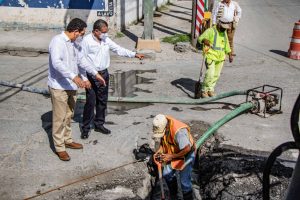 La rehabilitación del drenaje sanitario se contempla en el tramo de Roberto Guerra a avenida Cantinflas, trabajos que incluyen reposición de tubería 30 pulgadas de diámetro de PVC; atarjea de 8 pulgadas de diámetro; construcción de 41 descargas sanitarias, interconexión de tuberías, entre otros.