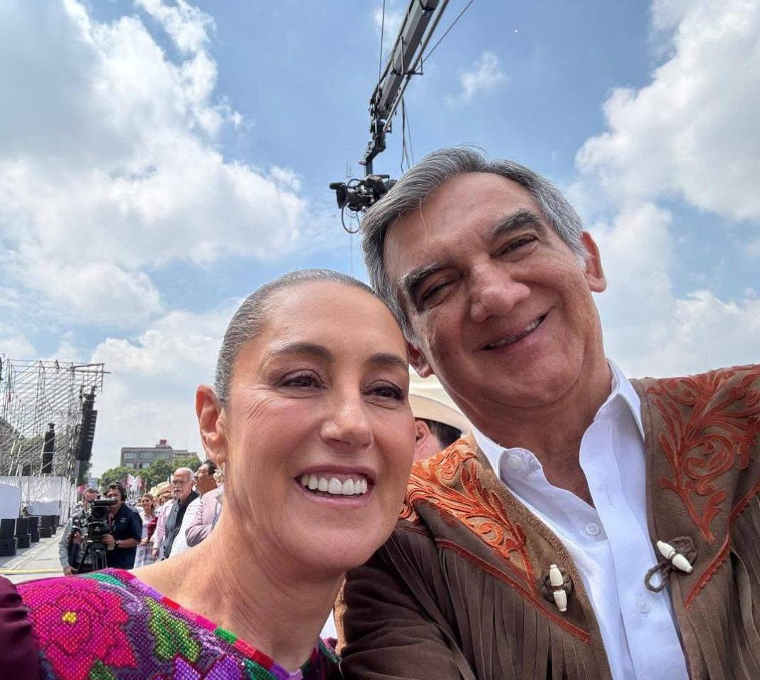El gobernador de Tamaulipas, Américo Villarreal Anaya, acompañado por la doctora María de Villarreal, presidenta del Sistema DIF Tamaulipas, atestiguó el mensaje de la presidenta Claudia Sheinbaum Pardo, con motivo de su primer año de gobierno pronunciado en el Zócalo capitalino.