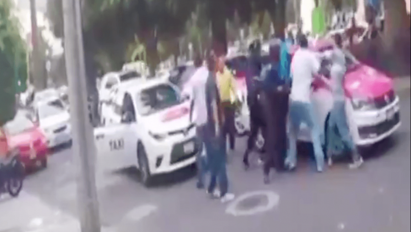 Un video que circula en redes sociales, muestra las violentas acciones que un grupo de conductores de taxis de la Ciudad de México, tomaron en contra de un par de repartidores de la plataforma Uber Eats, en calles de Polanco.