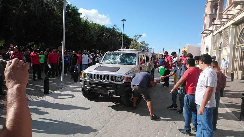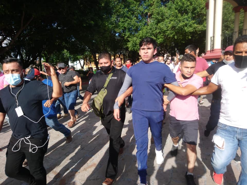 Se salvo de ser linchado un enfermero texano de nombre Mario de 18 años, quien de manera intencional choco los taxis que bloqueaban el paso n la Plaza Principal.