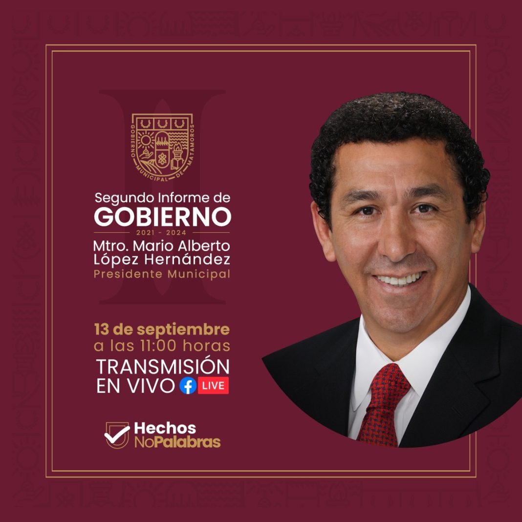 Para que todos los ciudadanos conozcan el trabajo realizado en el segundo año de gobierno de la administración 2021-2024, el Informe de actividades se trasmitirá en vivo a través de las páginas oficiales del Gobierno de Matamoros.