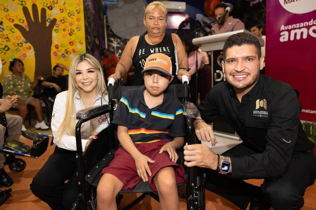 El presidente municipal, Beto Granados, acompañó a la presidenta del Sistema DIF Matamoros, Ana Ariceaga de Granados, en un emotivo evento realizado en el Centro de Rehabilitación Integral (CRI) del DIF Matamoros, donde se llevó a cabo la entrega de 50 sillas de ruedas y tarjetones de discapacidad a personas que más lo necesitan.