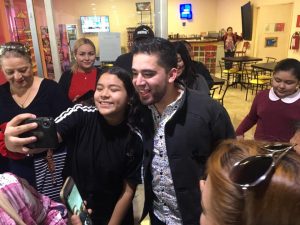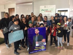 Fue Charly, quien al llegar causo gritos y ovaciones entre todas sus fans, amigos y familiares lo recibieron con porras y se le amontonaron para pedirle fotografías que amablemente cedió a todo aquel que le pedía una foto.
