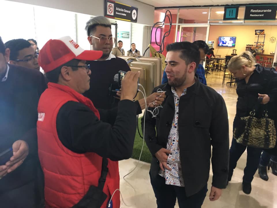 Familiares y fanáticos de Charly Zuñiga se dieron cita en el aeropuerto Servando Canales de Matamoros para recibirlo y felicitarlo tras obtener el quinto lugar en el concurso de canto La Academia de Tv Azteca.