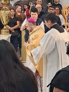 La primera de las homilías fue celebrada a la medianoche por el Obispo Monseñor Eugenio Lira Rugarcia en una iglesia abarrotada de fieles que llegaban cargados de flores, veladoras e incluso esculturas de tamaño natural para bendecir.