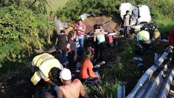 Se registró la volcadura de un camión donde eran transportados migrantes sobre la carretera federal 180 a la altura de la Curva San Matías, en el municipio de San Andrés Tuxtla, que dejó saldo preliminar de un muerto y 45 lesionados.
