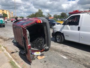 POR IR A EXCESO DE VELOCIDAD, PAREJA DE LA TERCERA EDAD TERMINA VOLCÁNDOSE EN SU CAMIONETA Y RESULTAN HERIDOS