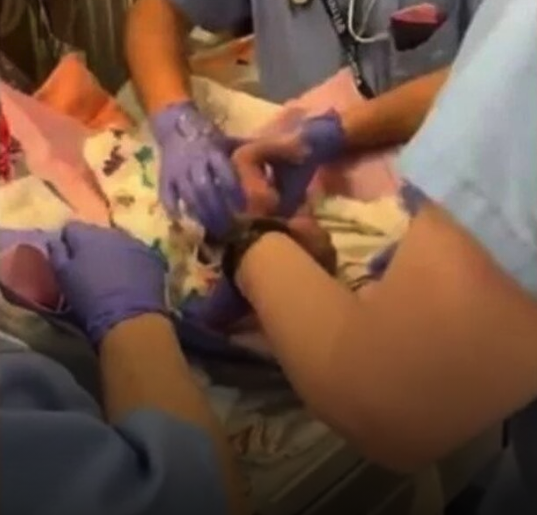 Sin embargo, los demás médicos presentes actuaron de inmediato y lograron sujetar a tiempo a la recién nacida.