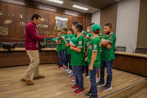 Esta mañana el alcalde Mario Alberto López Hernández abanderó a la Selección Mexicana de Beisbol Infantil, integrada por los campeones de la Liga Matamoros A.C. y quienes a partir del 18 de agosto representarán a México en la Serie Mundial de Williamsport, Pennsylvania.