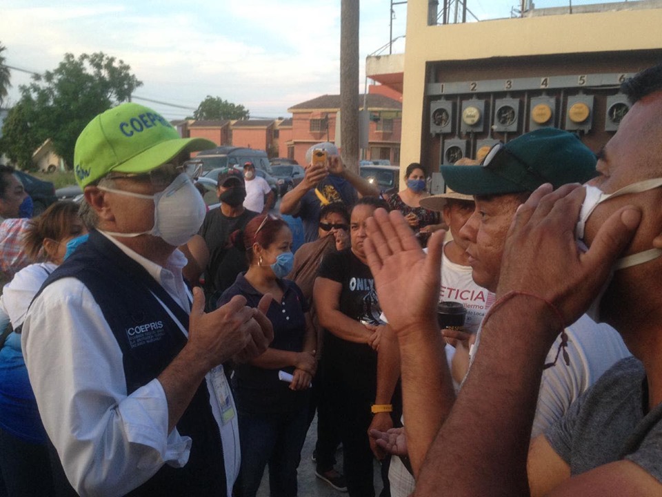 Evasivo hasta con los reporteros, el coordinador de COEPRIS se tardo como media hora para atender los reclamos de gel y cubrebocas, cuando por fin llevó resultaron insuficientes para el grupo cuya única falta fue salir de su casa para buscar comida.