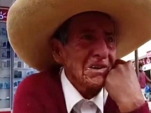 Un septuagenario llora desconsolado en una calle de Perú luego que sus hijos le exigieran su herencia.