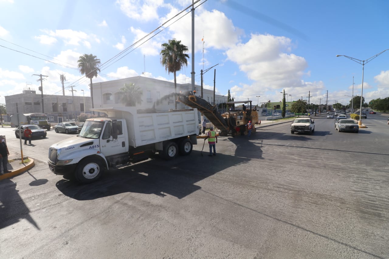 Este martes por la mañana el Gobierno Municipal de Matamoros inició los trabajos de rehabilitación de pavimento en las avenidas Rigo Tovar y Lauro Villar.
