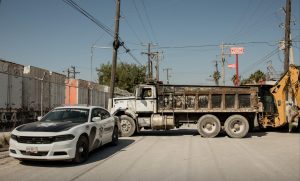 Otra de las acciones de Tránsito y Vialidad es la de brindar apoyo al departamento de Obras Públicas en las diversas arterias en donde se hacen trabajos de bacheo, como así lo hicieron en la calle Uniones y Aguascalientes.