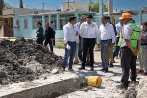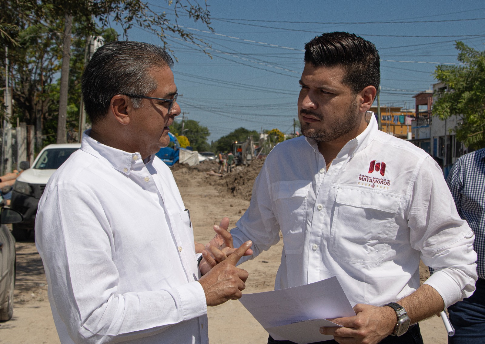 Este jueves, el alcalde de Matamoros, Alberto Granados, encabezó la supervisión de obras de rehabilitación de drenajes caídos, acompañado del gerente general de la Junta de Aguas y Drenaje (JAD), Ing. Marco Antonio Hernández Acosta, y el secretario de Desarrollo Urbano y Ecología, Arq. Alfonso Treviño Robles.