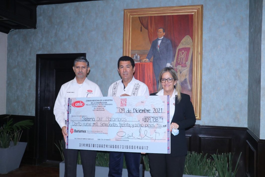 Lo anterior lo mencionó durante un encuentro con integrantes de la Cámara Mexicana de la Industria de la Construcción, delegación Matamoros, quienes hicieron entrega de un cheque por $109,738.00 para apoyar las actividades del Sistema para el Desarrollo Integral de la Familia.