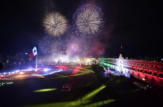 Tras la ceremonia del Grito, el Zócalo se iluminó con un show de fuegos artificiales junto a música regional de cada Estado del país.