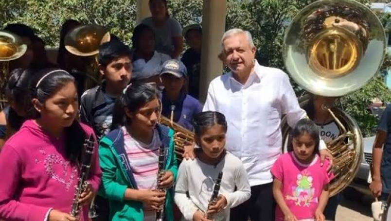 AMLO recordó ante reporteros el compromiso que hizo en Oaxaca con las bandas musicales de niños que hay en las escuelas.
