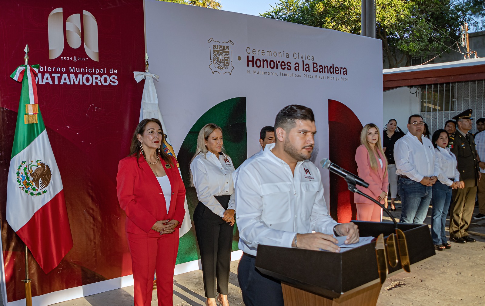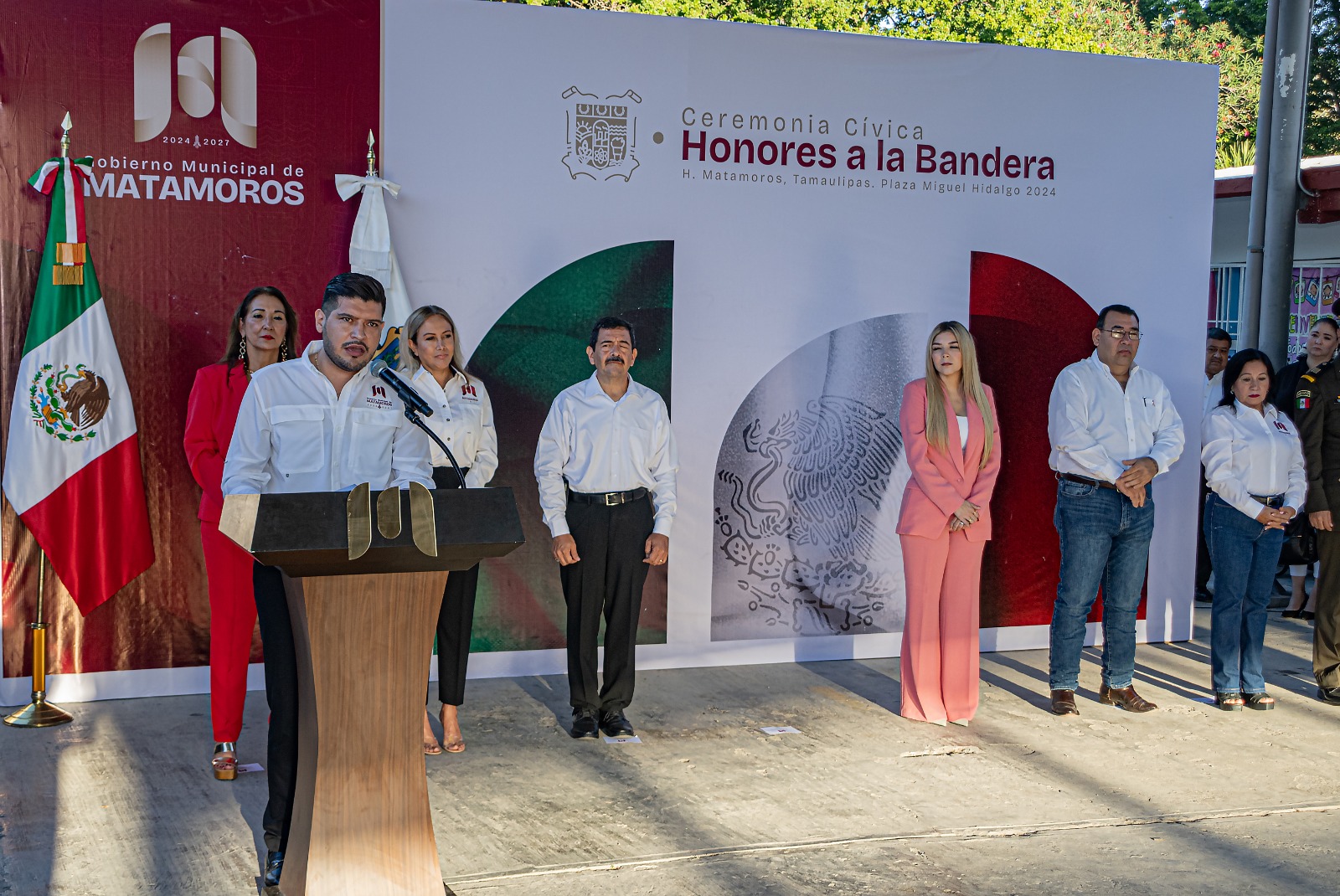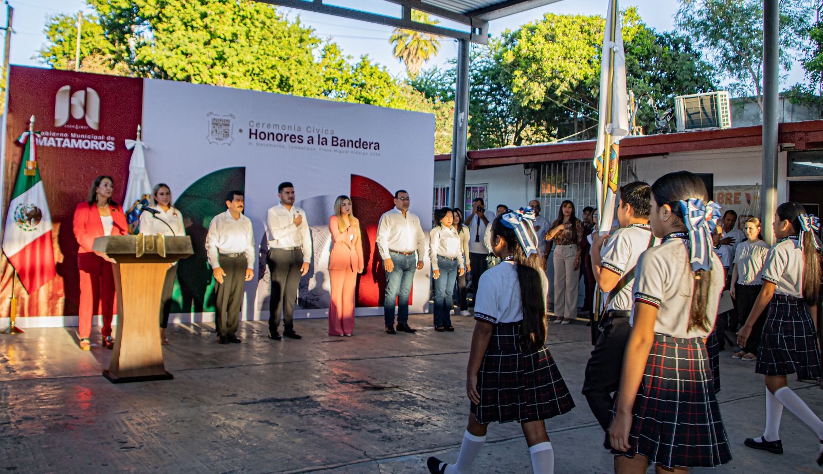 En un acto de compromiso y respeto a los símbolos patrios, el alcalde Alberto Granados Fávila encabezó los honores a la bandera en la Esc. Primaria México Agrario del ejido del mismo nombre. Durante la ceremonia, el presidente municipal resaltó la importancia de fortalecer los valores cívicos en las nuevas generaciones y reafirmó el apoyo del Gobierno Municipal a la educación.