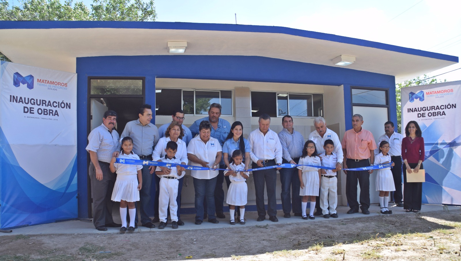 Con un gran recibimiento por parte de los alumnos y personal docente de la escuela primaria “Cuauhtémoc” de la colonia Treviño Zapata, la presidenta municipal, acompañada por funcionarios públicos, síndicos y regidores, así como del personal escolar de este plantel, entregó la obra de construcción de servicios sanitarios con los que se beneficiaran 1,100 alumnos, así como el personal docente y administrativo.