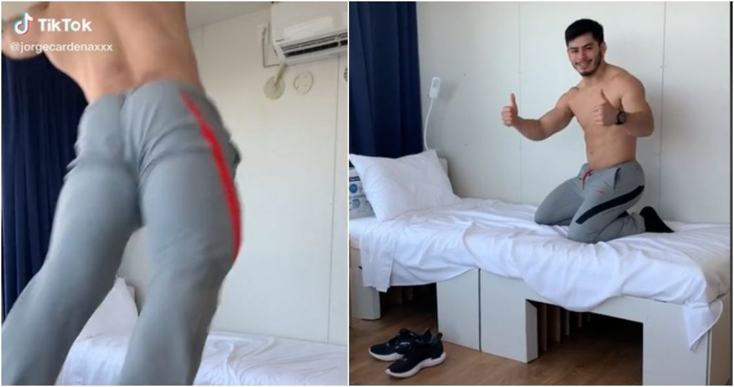 Sin embargo, Jorge Cárdenas, a través de su cuenta de TikTok, compartió un video con el mensaje “Para los que preguntaban por las camas antisexo” en el que muestra cómo el atleta se para sobre una cama contigua y se arroja con fuerza a otra que se encuentra enfrente.