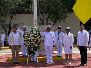 Esta mañana el alcalde Mario Alberto López Hernández acompañó al vicealmirante, Juan Edmundo Lozano Figueroa, comandante de la Primera Zona Naval en la celebración del Día de la Marina Nacional, en donde se rindió homenaje a los elementos de esta institución que han perdido la vida en cumplimiento de su deber.