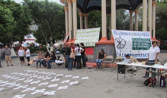 Maestros fronterizos se sumaron a la jornada mundial de protestas a dos años de la desaparición de 43 normalistas de Ayotzinapa.