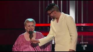 “¡Eres un inútil!”, le dijo Paquita de cariño, haciendo alusión a su grito de guerra “¡¿Me estás oyendo inútil?!” y arrancando risas en el foro. Bad Bunny se quedó cortésmente sosteniéndole el micrófono durante todo su discurso.