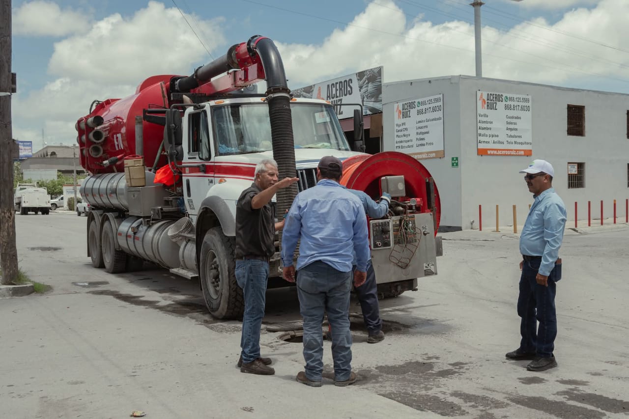 También se visitó la planta potabilizadora No. 2 para supervisar su operación, garantizando el abasto de agua potable a la población. Más tarde, se acudió a zonas donde todavía se presentan encharcamientos importantes, como Avenida Solidaridad, donde personal de la Secretaría de Marina apoya en labores de limpieza y retiro de residuos sólidos para facilitar el flujo del agua. En ese punto, opera un camión vactor para el desazolve de líneas de drenaje. También se supervisaron las condiciones en la calle 3 y Natividad Lara, en la colonia Independencia, donde se encuentra el cuerpo de agua conocido como El Laguito.