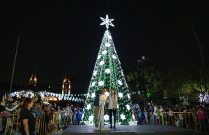 Miles de familias acompañan a Mario López y Marsella Huerta, en encendido de pino y espectacular desfile navideño