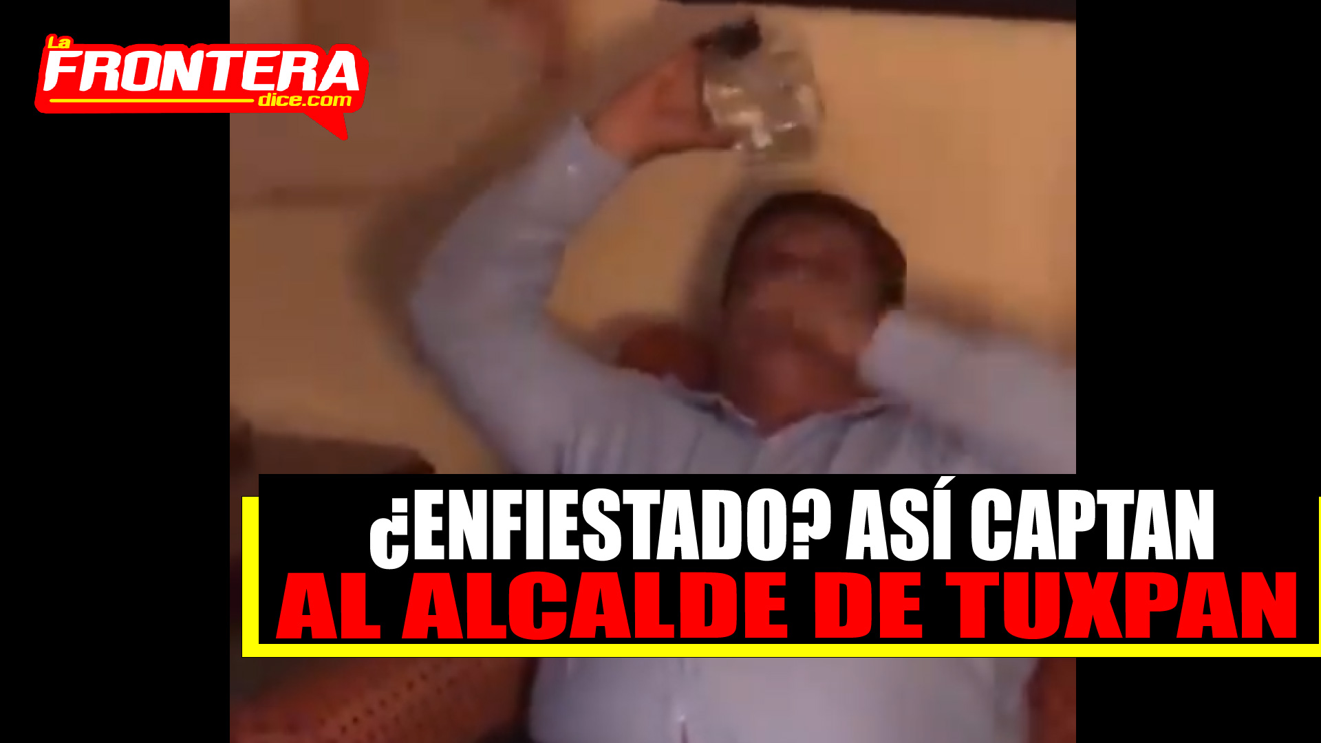 Entre aplausos, gritos y porras de las despampanantes mujeres que le rodean, el alcalde de Tuxpan, Juan Antonio Aguilar Mancha, se olvida de su investidura y se embriaga empinándose una botella de tequila.
