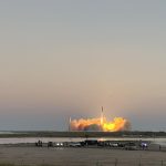 Aun a 2 kilometros de distancia, visitantes de Playa Bagdad tuvieron una vista privilegiada del quinto lanzamiento de la nave Starship en Space X.
