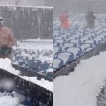 Aficionados de los Bills quitan la nieve del Highmark Stadium y acaban sin playera