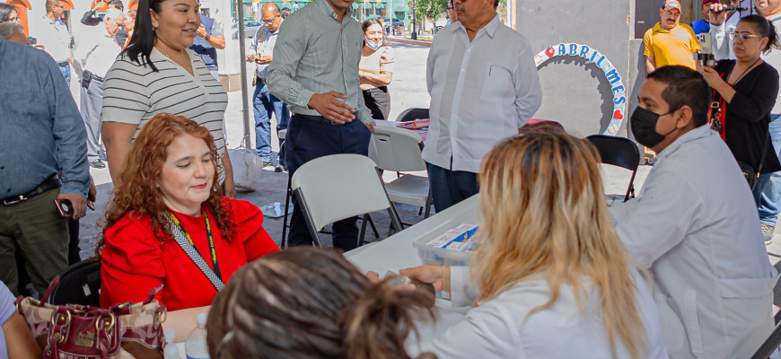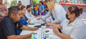 En la plaza principal fueron instalados varios módulos en donde los empleados y público en general recibieron atención médica, que incluyó revisión de oxígeno, glucosa, aplicación de vacunas, entre otros.