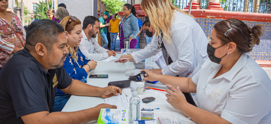 En el marco del mes de la salud, este miércoles el Municipio de Matamoros a través de la Secretaría de Salud Pública Municipal realizó una brigada asistencial en la plaza principal, en donde se brindó atención médica a empleados municipales y público en general.