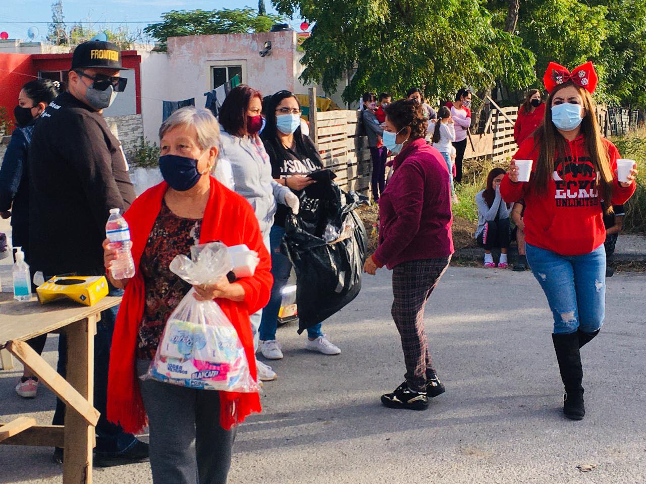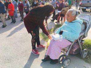 Para servir y atender a los abuelitos se sumaron los fans del grupo Somos Frontera que también habían ayudado en una colecta de alimentos.