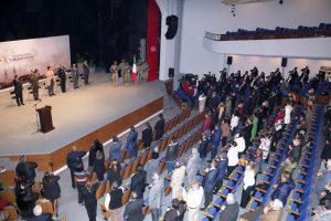 El Presidente Municipal de Matamoros encabezó la ceremonia conmemorativa, acompañado por autoridades militares, así como también por los Secretarios del Ayuntamiento y de Educación, Cultura y Deporte.