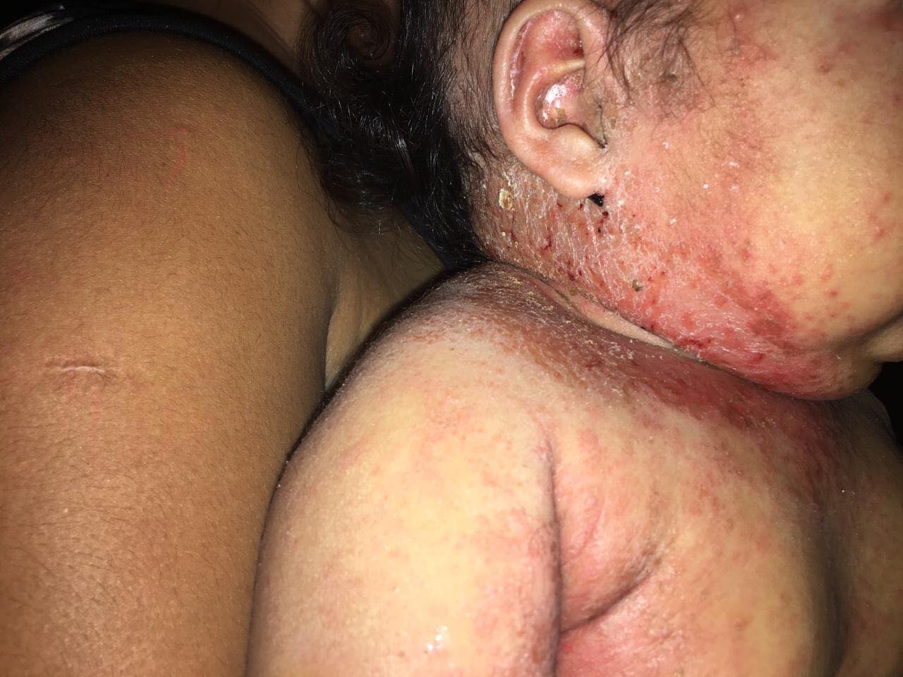 «Pero que no es suficiente ya que también se tienen que comprar pañales, leche y el medicamento Flurocortizona pastillas que hace que tenga la pequeńa milagros reacción en la piel que se le reseca y se le hacen llagas».