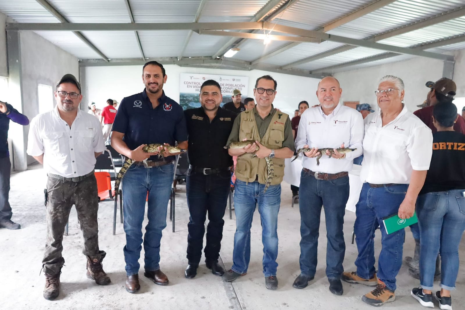 En un ejercicio de vinculación institucional que promueve el fortalecimiento académico y profesional de su comunidad estudiantil, la Universidad Autónoma de Tamaulipas (UAT), a través de la Facultad de Medicina Veterinaria y Zootecnia (FMVZ), participó activamente en el Curso de Control y Manejo de Población en Vida Libre para Conflicto Humano- Cocodrilo, realizado en la comunidad de Jacinto Canek, municipio de Casas, Tamaulipas. Este curso, organizado por la Comisión de Caza y Pesca Deportiva de Tamaulipas en coordinación con el Gobierno Municipal de Casas, brindó a estudiantes de veterinaria la oportunidad de adquirir conocimientos teóricos y prácticos sobre el manejo responsable del cocodrilo de Morelet (Crocodylus moreletii), también conocido como cocodrilo mexicano, una especie clave en los ecosistemas de la región y cuyo manejo requiere de una preparación técnica especializada. En el evento, se enfatizó la importancia de formar profesionales capacitados para intervenir en conflictos entre comunidades humanas y fauna silvestre, en un marco de conservación y protección del equilibrio ecológico. Durante el curso se contó con la presencia y el acompañamiento del director de la Facultad de Veterinaria de la UAT, Flaviano Benavides González, quien reiteró la importancia de colaborar en programas de conservación que complementen la formación de los estudiantes. Por parte de la Facultad de Ingeniería y Ciencias de la UAT, participó el Dr. Edmar Meléndez Jaramillo, quien aportó su experiencia como investigador en temas ambientales, reforzando la visión interdisciplinaria del curso. Se destacó también la intervención de los biólogos Axel Xavier Contreras y Daniel Rodríguez Negrete, provenientes del estado de Yucatán, quienes compartieron experiencias y estrategias aplicadas en otras regiones del país para el manejo de cocodrilos en vida libre. R-AP-01-34-01 Ver. 2 ACT. 19/07/2024 Este tipo de experiencias refuerzan el compromiso institucional de la UAT con una educación de calidad, alineada a los retos globales y comprometida con el desarrollo sostenible, al tiempo que fortalecen la preparación profesional de los futuros médicos veterinarios zootecnistas que, desde ahora, se capacitan para ser agentes de cambio en sus comunidades.